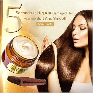 Masque capillaire magique Hair masque 60ml avec Serviette Conditionneur Profond argan oil Nourrissant Doux Lisse Réparation Dommages douce Masque cheveux secs et abimés (60ml+Serviette)
