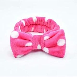Qinlee Bandeau Cheveux élastique Forme de Nœud Papillon Flannel Mignonne Petits Points Bandeaux Serre Tête pour Cheveux Pendant Les Soins du Visage Maquiller/Salle de Bain/Faire du Sport-Ros