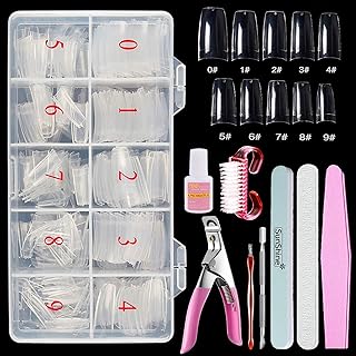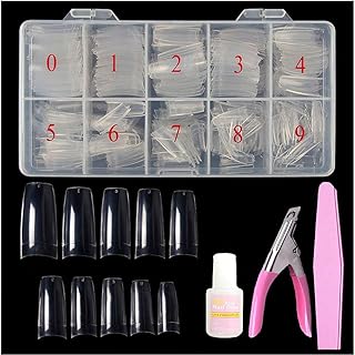 By Vixi JEU D’ONGLES LONG CARRÉ. COLLE ET LIME GRATUITES, 10 tailles, de faux ongles express à couverture complète Clair, une utilisation professionnelle en salon & à domicile (500 x Ongles)