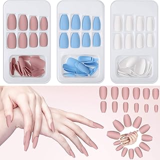 72 Pièces Ballerine Faux Ongles Faux Ongles Artificiels de Cercueil Kit d’Ongles Moyenne Longues Mate, 3 Boîtes Faux Ongles à Couverture Complète avec Lime à Ongles pour Salon d’Ongles Bricolage Arts