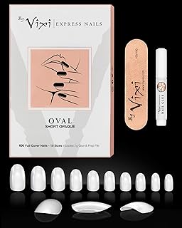 By Vixi JEU D’ONGLES COURT OVALE. COLLE ET LIME GRATUITES, 10 tailles, de faux ongles express à couverture complète Opaque, une utilisation professionnelle en salon & à domicile (600 x Ongles)