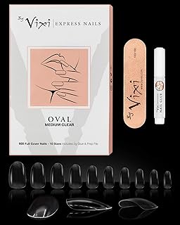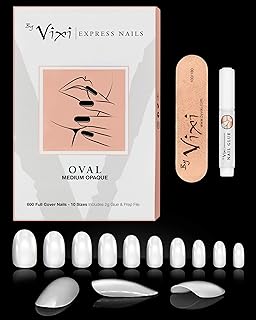 By Vixi JEU D’ONGLES MOYEN OVALE. COLLE ET LIME GRATUITES, 10 tailles, de faux ongles express à couverture complète Opaque, une utilisation professionnelle en salon & à domicile (600 x Ongles)