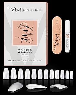 By Vixi JEU D’ONGLES MOYEN CERCUEIL/BALLERINE. COLLE ET LIME GRATUITES 12 tailles faux ongles express à couverture complète Clair, une utilisation professionnelle en salon & à domicile- 600xOngles