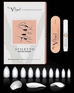 By Vixi JEU D’ONGLES MOYEN STILETTO. COLLE ET LIME GRATUITES, 10 tailles, de faux ongles express à couverture complète opaque, une utilisation professionnelle en salon & à domicile (600 x Ongles)