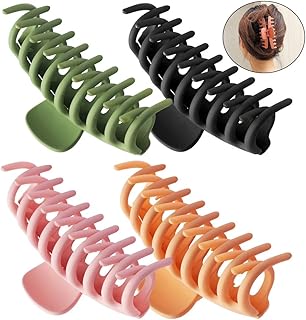 pengxiaomei Lot de 4 pinces à cheveux en plastique mat, antidérapantes, grandes pinces à cheveux pour femmes et filles, tenue solide pour cheveux épais (noir, rose, vert, kaki)