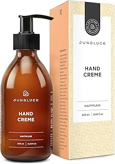 junglück - Crème pour les mains - flacon en verre brun - soin riche pour les mains sèches et gercées - naturel/vegan/durable/fabriqué en Allemagne - 250 ml
