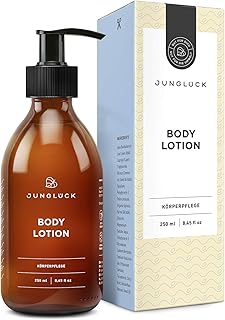 junglück - Lotion pour le corps - flacon en verre brun - soin riche pour tout le corps - naturel/vegan/durable/fabriqué en Allemagne - 250 ml