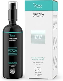 Gel d'aloe vera 100% bio - Soin hydratant vegan avec sérum d'acide hyaluronique - Concentré de pur jus d'aloe vera en flacon de verre - 200ml par colibri cosmetics - Made in Germany