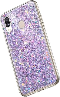 Saceebe Compatible avec Samsung Galaxy A40 Coque Glitter Paillette Brillant Strass Diamant Coque Silicone TPU Souple Housse Transparent Ultra Mince Léger Antichoc Etui de Protection,Violet