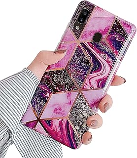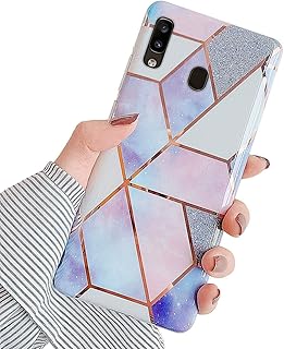 Saceebe Compatible avec Samsung Galaxy A20 / A30 Coque Etui Silicone 3D Géométrique Marbre Housse Léger Mince Flexible Étui Femme Fille Coloré Peint Housse Protection Slim Gel Cover,Violet Rose