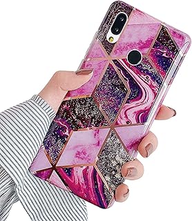 Saceebe Compatible avec Samsung Galaxy A70 Coque Etui Silicone 3D Géométrique Marbre Housse Léger Mince Flexible Étui Femme Fille Coloré Peint Housse Protection Slim Gel Cover,Violet Rose