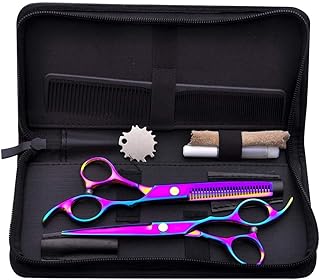 Ciseaux Coiffure Professionnels, 11PCS Set de Ciseaux Coiffure Professionnel, Avec Acier Inoxydable Amincissants Coupe de Cheveux Ciseaux Désépaissir Ensemble,vec Peigne à Cheveux Ciseaux,brosse