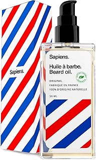Huile à Barbe par Sapiens Barbershop 50ml - FABRIQUÉE EN FRANCE - 100% d'Ingrédients d’Origine Naturelle - Enrichie en huile de ricin - Hydrate et Favorise la pousse de la barbe - Cèdre Agrumes