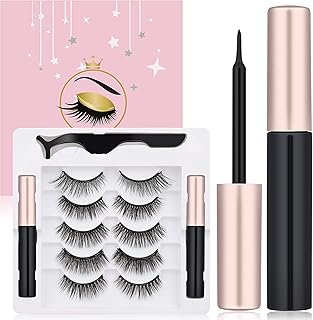 Cils Magnétiques Kit avec Eye-liner Naturel,Cils Magnetique Eyeliner Set w/5 Paires Faux Cils Magnétiques Naturels Réutilisables/2 Tubes Eyeliner/Pince à épiler Cils Extension de Cils