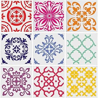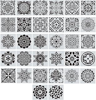 Pochoirs Mandala, Ensemble de modèles de Carreaux de 9 pochoirs de Peinture réutilisables Mandala parsemant Art Peinture tuiles pochoirs Outil pour Murs Art (6 x 6 Pouces)