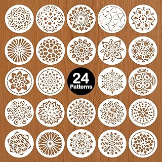 Integrity.1 Pochoirs de Peinture de Mandala,24 Pièces Pochoirs de Mandala, Pochoir de Mandala Réutilisable,pour la Peinture sur Bois,Peinture de Meubles en Bois et Murs de Pierre