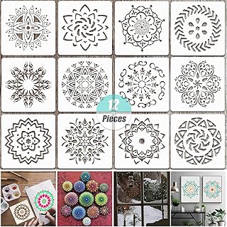 Mandala Pochoirs Modèle, Mandala Pochoir réutilisable Lot de 12 (14 x 14 cm) modèle de pochoir de peinture,Mandala Dotting Pochoirs pour décoration bricolage, peinture sur bois, rochers et murs
