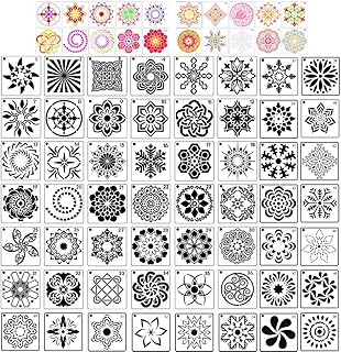 Aweisile Pochoir Mandala 48 Pcs Mandala Pochoirs Modèle Pochoir Mandala Modèles de Peinture réutilisable 13 X 13cm pour les murs Art Rocks Stone Wood Furniture Fabric etc